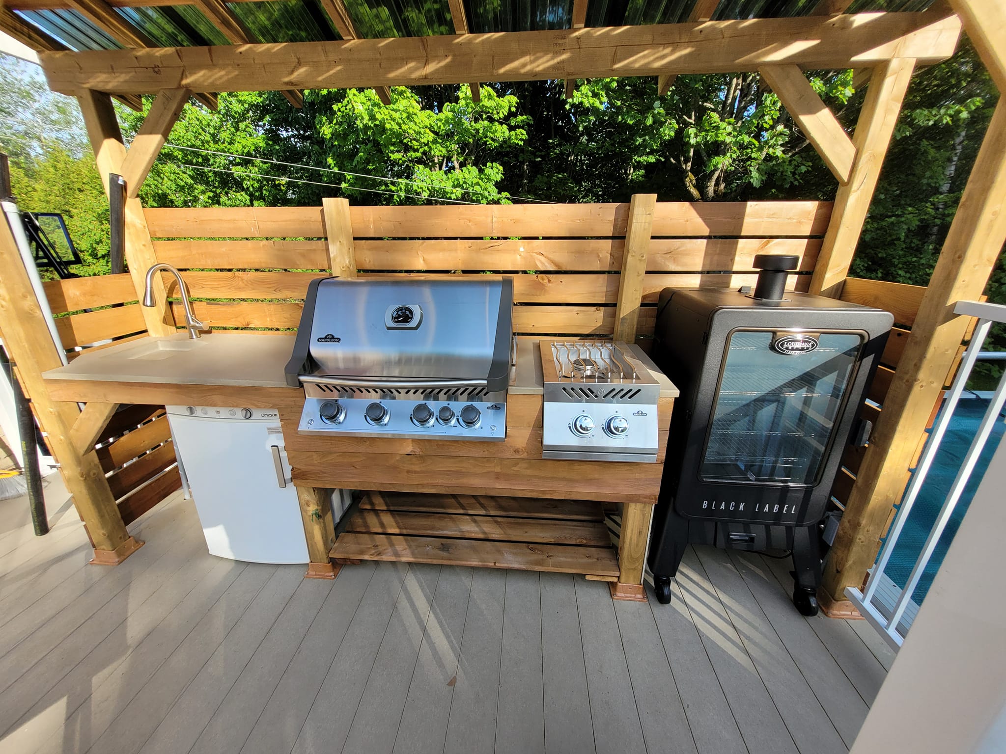 Résistants, épurés et adaptés à vos besoins, nos comptoirs et stations de cuisson prolongent votre maison jusque dans la cour.